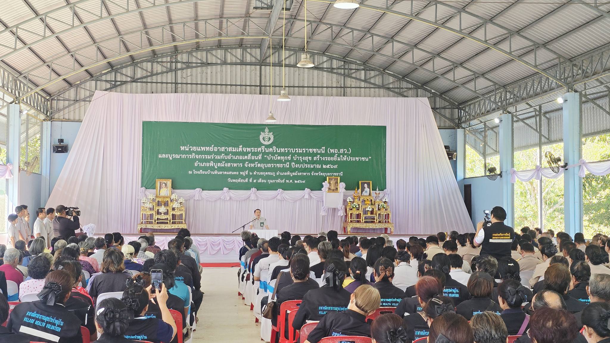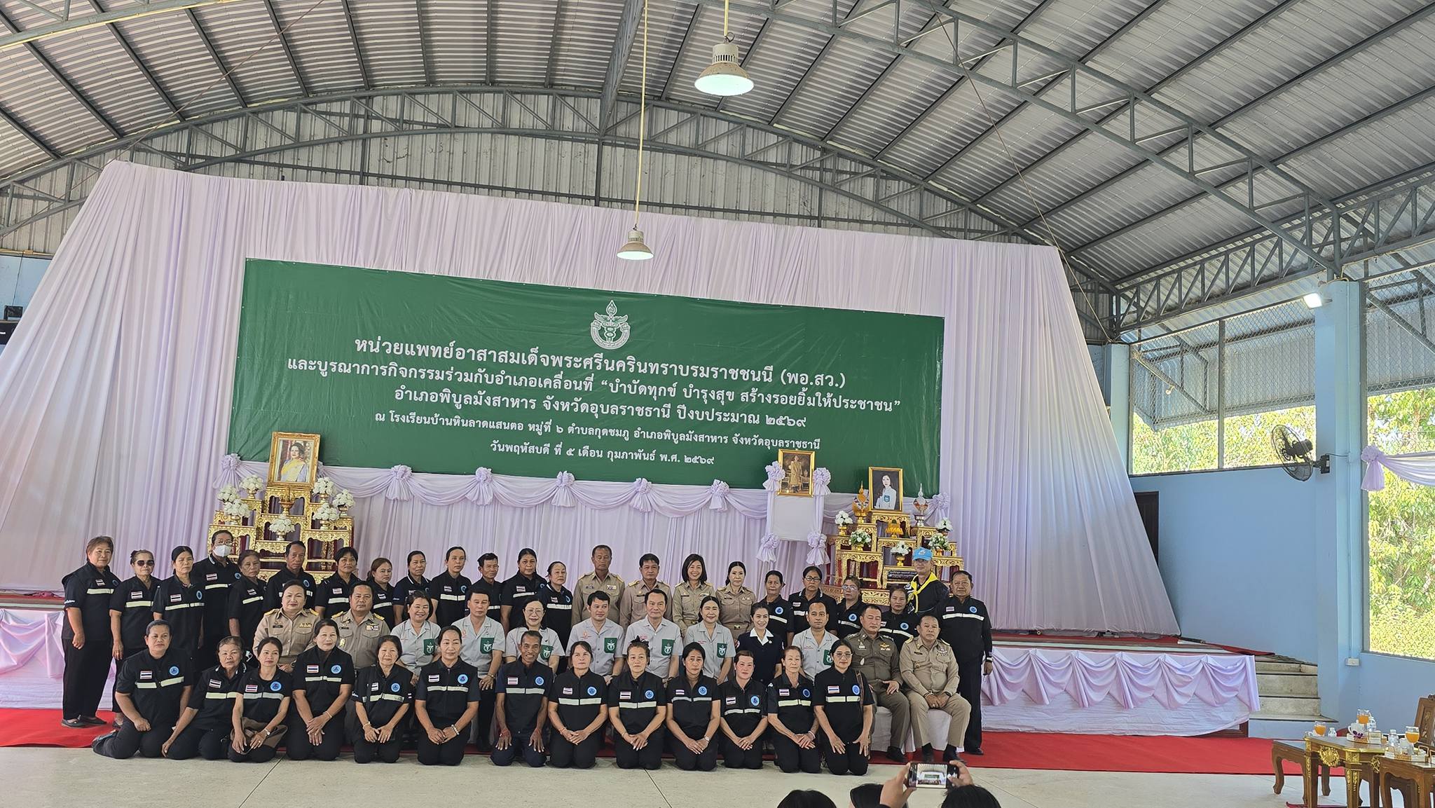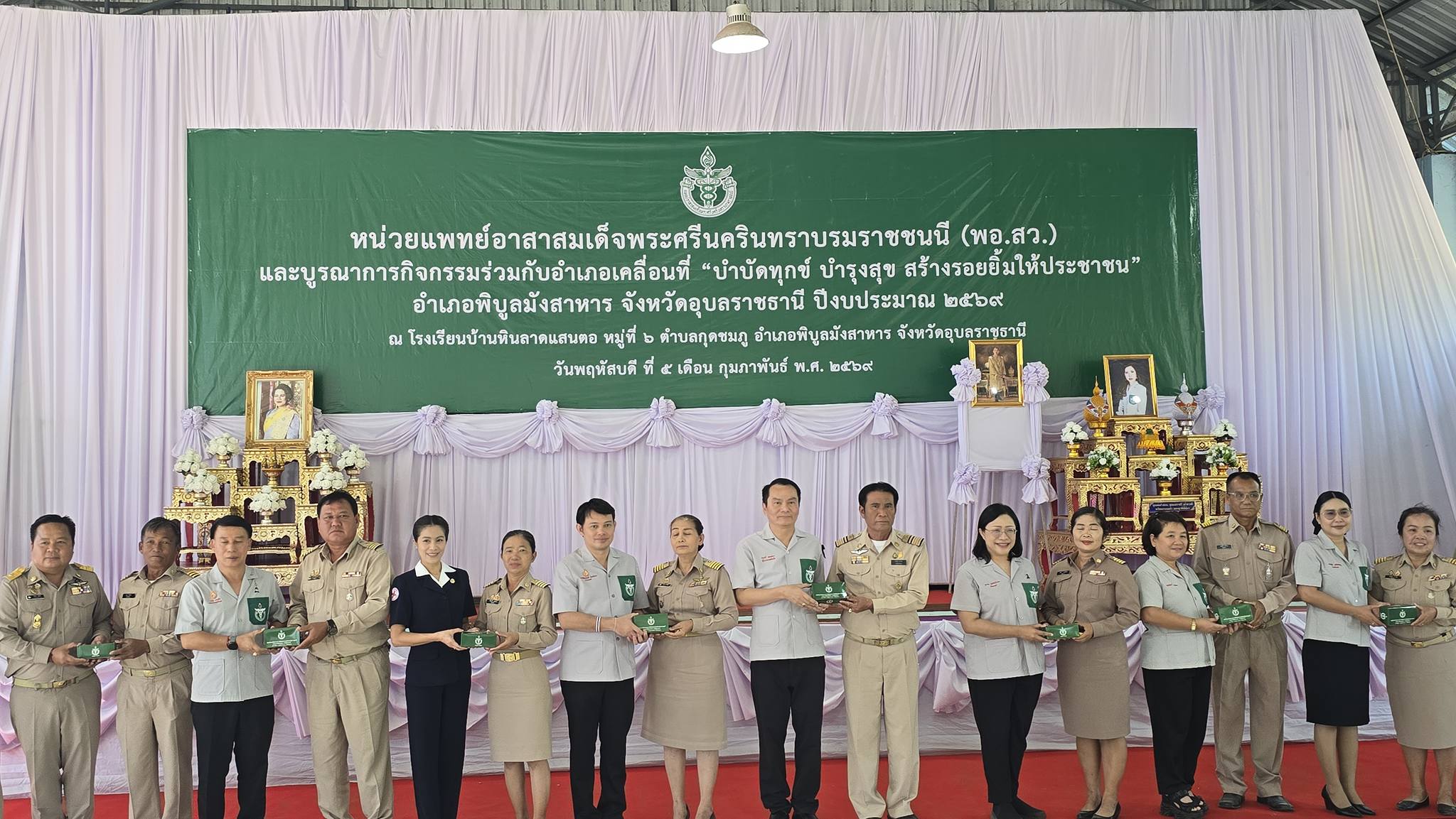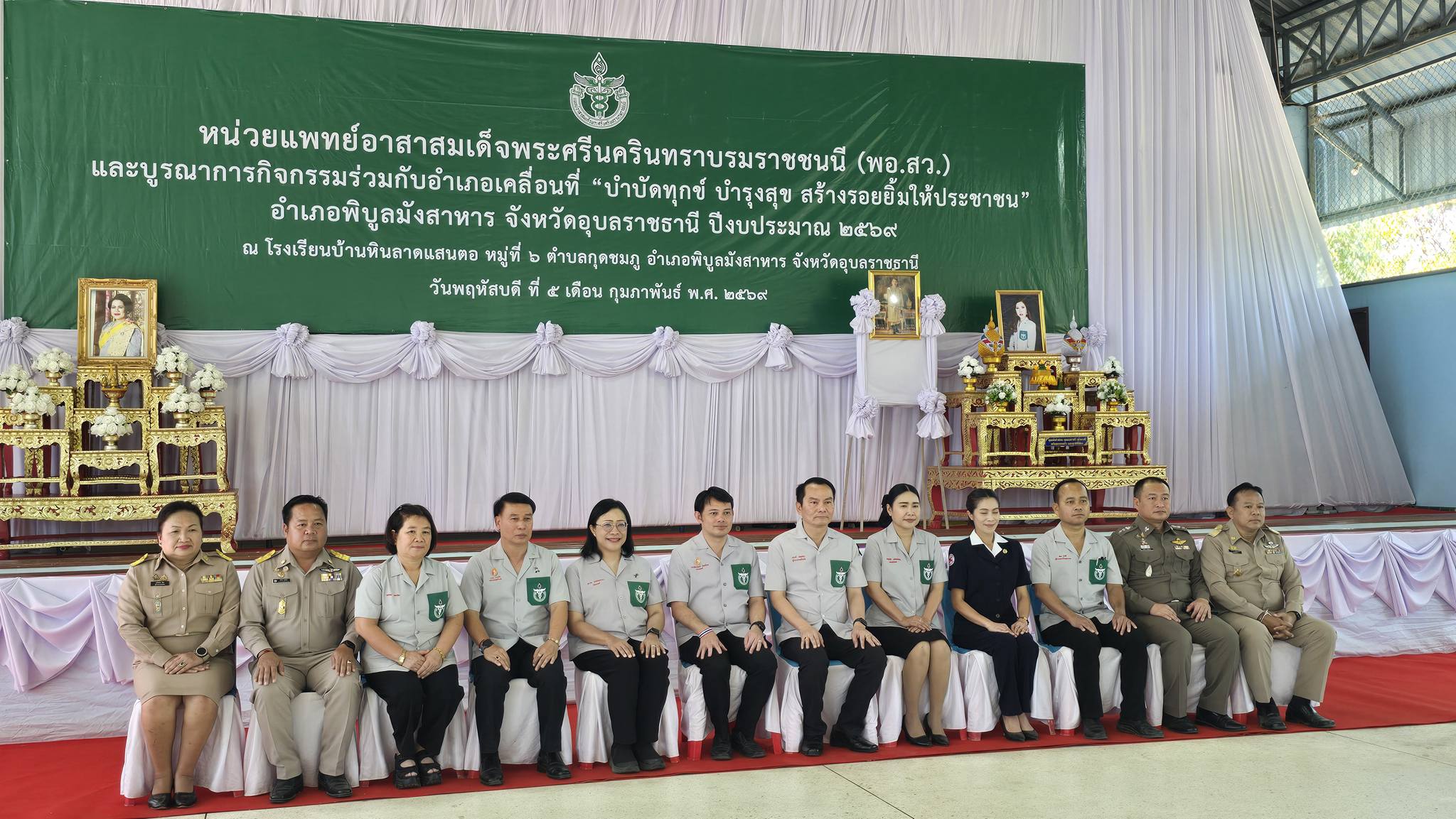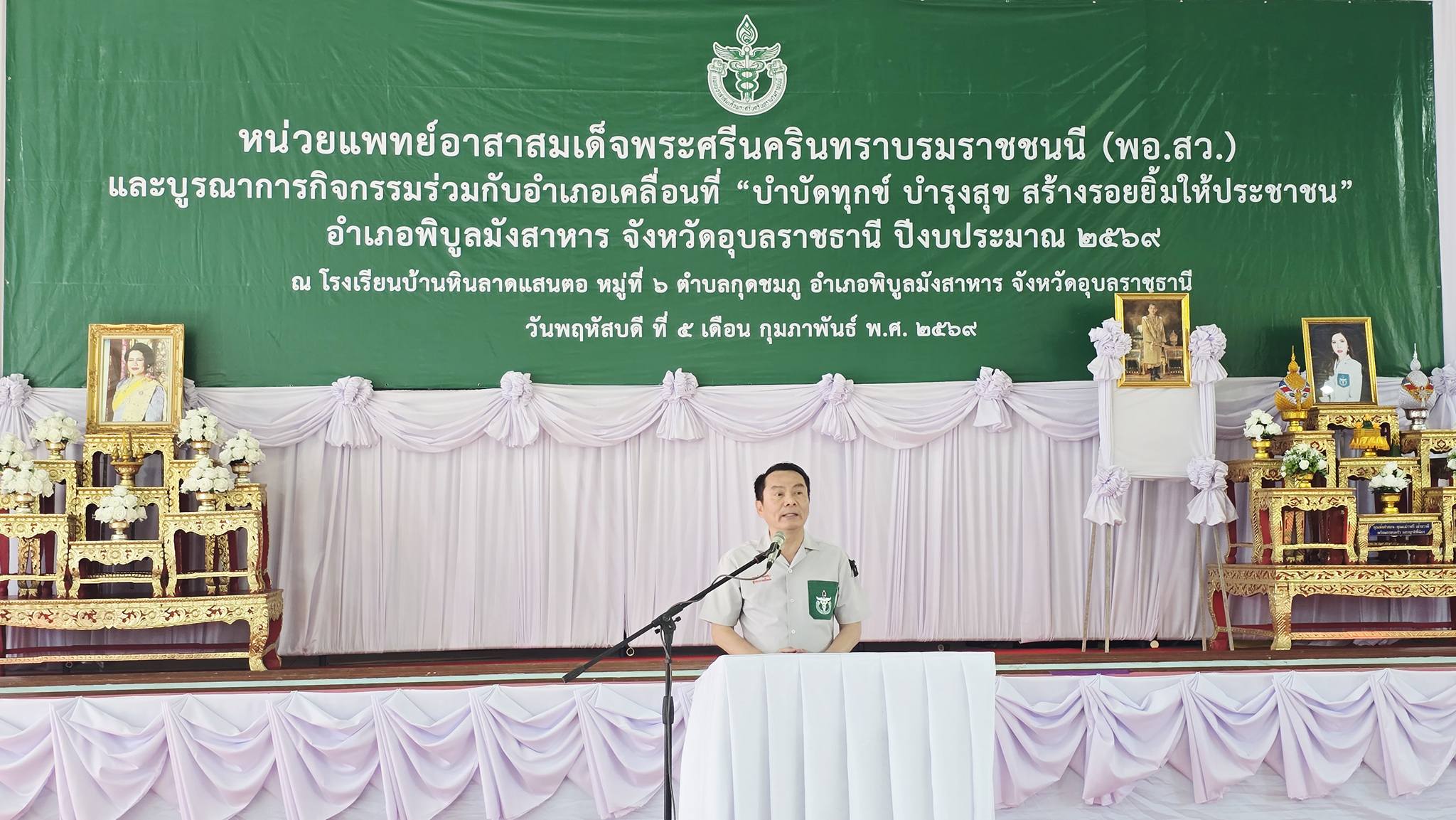 วันที่ 5 กุมภาพันธ์ พ.ศ. 2569 เวลา 09.30 น. นายณรงค์ เทพเสนา ผู้ว่าราชการ จังหวัดอุบลราชธานี เป็นประธาน ในพิธีเปิดหน่วยแพทย์อาสา สมเด็จพระศรีนครินทราบรมราชชนนี (พอ.สว)และบูรณาการกิจกรรม ร่วมกับอำเภอเคลื่อนที่ "บำบัดทุกข์ บำรุงสุข สร้างรอยยิ้มให้ประชาชน " อำเภอพิบูลมังสาหาร จังหวัดอุบลราชธานี ปีงบประมาณ 2569 นายมงคล ศุภสุข นายกเทศมนตรีตำบลกุดชมภู กล่าวรายงานข้อมูลพื้นที่หมู่บ้าน มีผู้ร่วมพิธีเปิดดังนี้ คณะผู้บริหารเทศบาลตำบลกุดชมภู สมาชิกสภาเทศบาล นายอภิชาติ เศรษฐมาตย์ ปลัดเทศบาลตำบลกุดชมภูพร้อมด้วยเจ้าหน้าที่ พนักงานเทศบาลตำบลกุดชมภู กำนัน ผู้ใหญ่บ้าน อาสาสมัครสาธรณสุขประจำหมู่บ้าน (อสม.) ผู้อำนวยการสถานศึกษา ส่วนราชการในพื้นที่ นายบรรพต สันติวิชัยกุล สมาชิกองค์การบริหารส่วนจังหวัดอุบลราชธานี เขต 2 ( สจ.อ๊อด) โดยมี นางสาวมนัสวีช์ ทรัพย์พร้อม นายอำเภอพิบูลมังสาหาร ได้กล่าวรายงานวัตถุประสงค์ในครั้งนี้ หน่วยแพทย์อาสาสมเด็จพระศรีนครินทราบรมราชชนนี (พอ.สว.) บูรณาการร่วมกับหน่วยบริการอำเภอเคลื่อนที่ "บำบัดทุกข์ บำรุงสุข สร้างรอยยิ้มให้กับประชาชน" มีการให้บริการ ได้แก่ การตรวจรักษาโรคทั่วไปตรวจรักษาทันตกรรม บริการแพทย์แผนไทย แพทย์ทางเลือกให้สุขศึกษา ทำหมันสุนัขและแมว และตรวจคัดกรองโรคบริการด้านอื่นๆได้แก่ บริการตัดผมจากส่วนราชการและหน่วยงาน และมีสินค้า OTOP ในพื้นที่ไว้จัดจำหน่าย ให้พี่น้องประชาชนที่มารับบริการ ณ โรงเรียนบ้านหินลาดแสนตอ หมู่ที่ 6 ตำบลกุดชมภู อำเภอพิบูลมังสาหาร จัวหวัดอุบลราชธานี