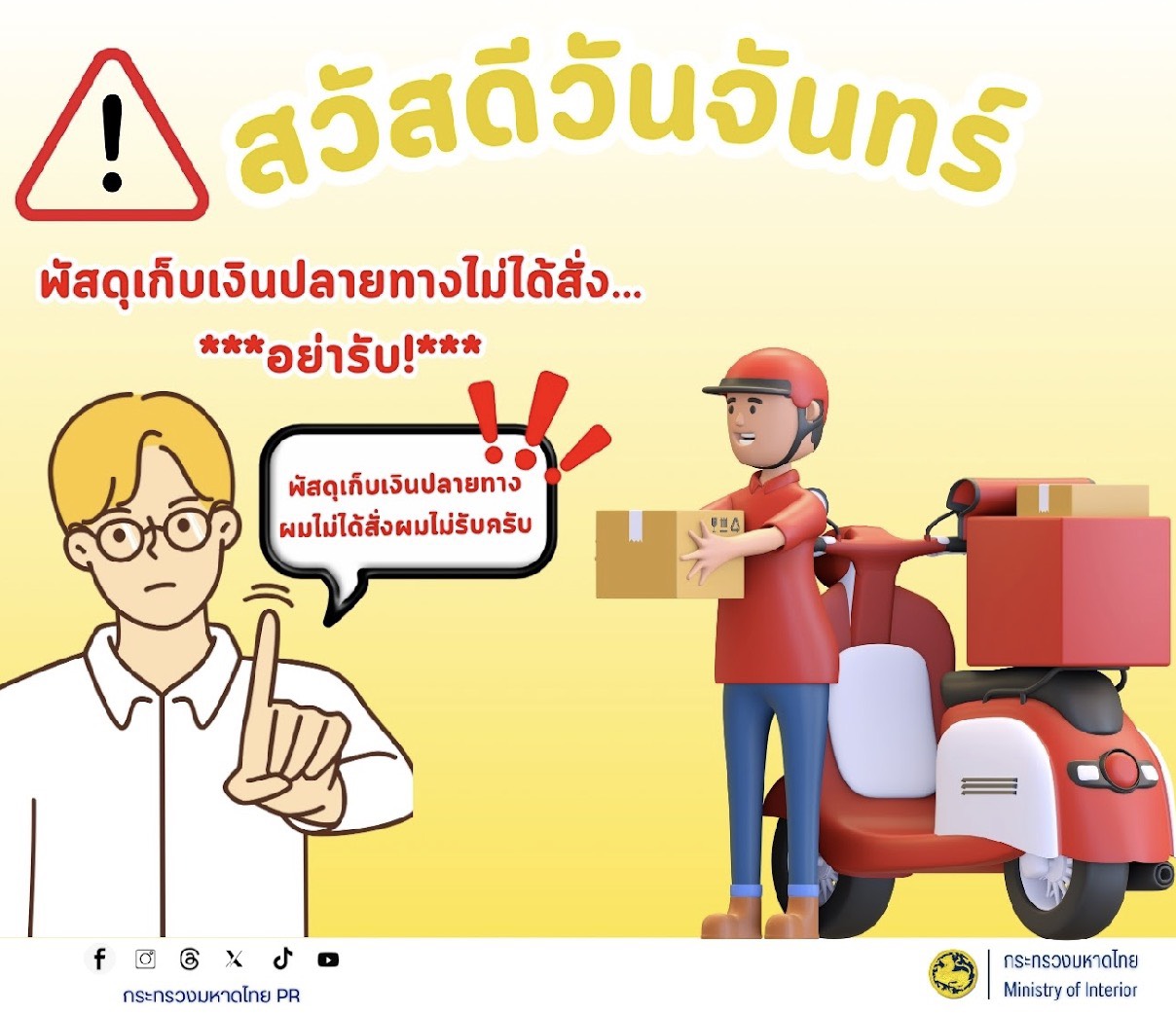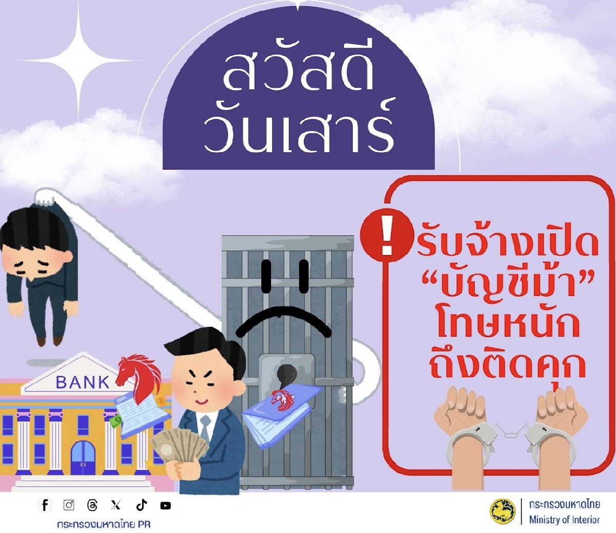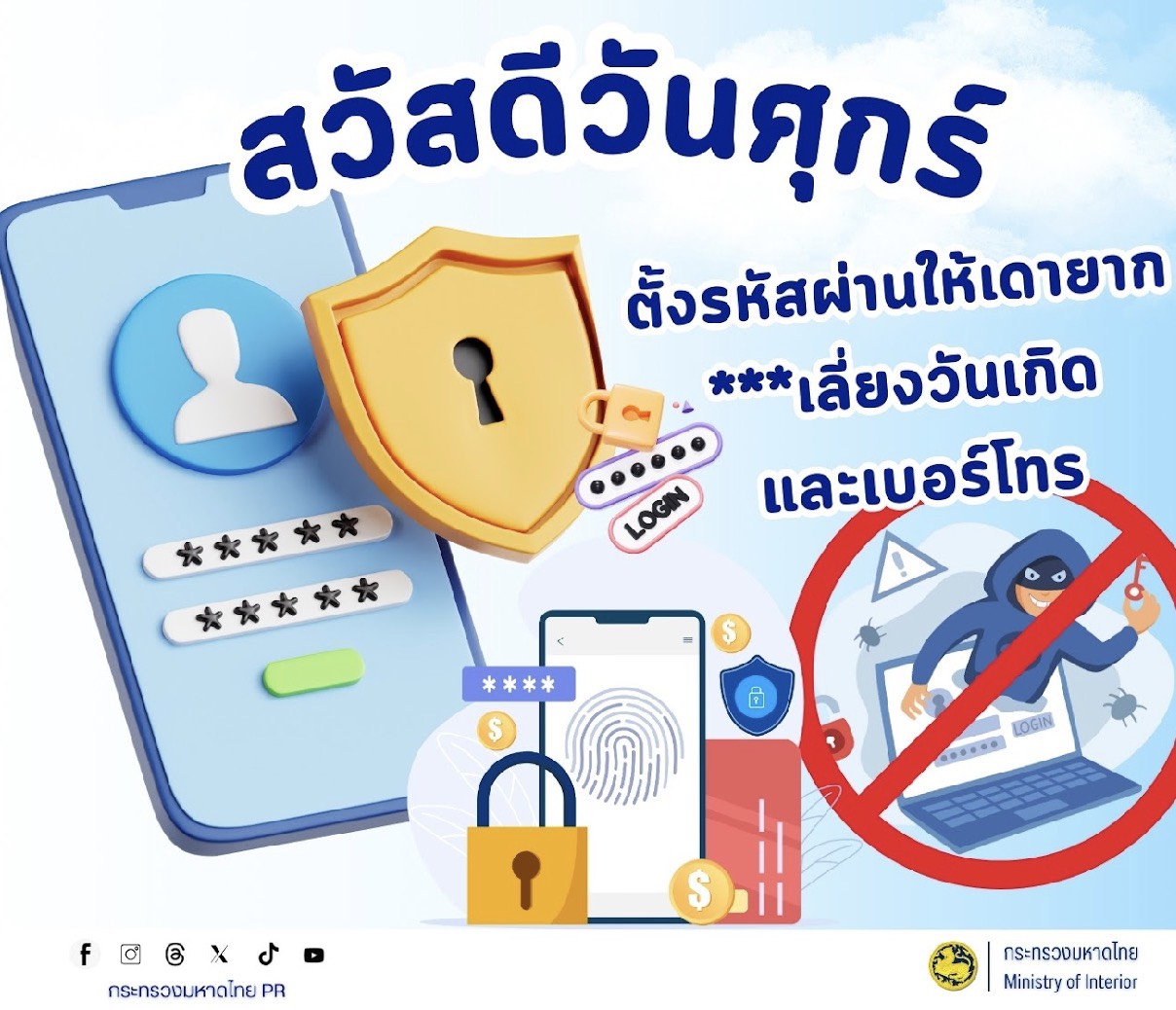 #ขอประชาสัมพันธ์การสร้างความรู้ความเข้าใจเพื่อป้องกันการหลอกลวงทางออนไลน์( Scammer) การป้องกันปัญหาอาชญากรรมทางไซเบอร์การพนันทุกรูปแบบและการหลอกลวงประชาชน"ไม่เชื่อไม่รีบไม่โอน #ไม่เชื่อ ตั้งสติอย่าหลงเชื่อคำขู่หรือข้อเสนอที่ดีเกินจริงจากคนไม่รู้จัก #ไม่รีบ ตรวจสอบข้อมูลกลับหน่วยงานที่ถูกอ้างถึงโดยตรงก่อนตัดสินใจ #ไม่โอน ห้ามโอนเงินให้บัญชีที่ไม่รู้จักหรือยังไม่ได้ตรวจสอบเด็ดขาด