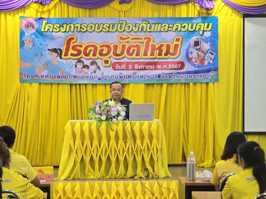 วันศุกร์, 02 สิงหาคม 2567 10:47วันที่ 2 สิงหาคม พ.ศ.2567 เวลา 09.00 น. นายมนตรี ศรีคำภา นายกเทศมนตรีตำบลกุดชมภู เป็นประธานเปิดโครงการอบรมป้องกันและควบคุมโรคอุบัติใหม่ ประจำปีงบประมาณ 2567 โดยมีวัตถุประสงค์เพื่อ สร้างการรับรู้และป้องกันเกี่ยวกับโรคอุบัติใหม่และโรคอุบัติซ้ำในเขตพื้นที่ตำบลกุดชมภู โดยมีคณะผู้บริหารเทศบาลฯ สมาชิกสภาเทศบาลฯ และพนักงาน เจ้าหน้าที่เทศบาลตำบลกุดชมภู ร่วมเป็นเกียรติในโครงการครั้งนี้ ณ ห้องประชุมเทศบาลตำบลกุดชมภู อำเภอพิบูลมังสาหาร จังหวัดอุบลราชธานี