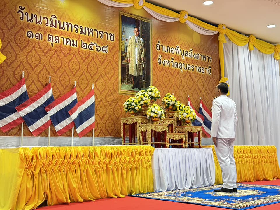 วันอังคาร, 14 ตุลาคม 2568 10:56วันที่ 13 ตุลาคม 2568 เวลา 07.00 น.นายมงคล ศุภสุข นายกเทศมนตรีตำบลกุดชมภู พร้อมด้วยพนักงาน เจ้าหน้าที่เทศบาลตำบลกุดชมภู ร่วมกิจกรรมเนื่องในวันนวมินทร มหาราช ณ หอประชุมอำเภอพิบูลมังสาหาร จังหวัดอุบลราชธานี วันนวมินทรมหาราช” วันแห่งการรำลึกถึงพระมหากรุณาธิคุณอันยิ่งใหญ่ของ พระบาทสมเด็จพระบรมชนกาธิ เบศร มหาภูมิพลอดุลยเดชมหาราช บรมนาถบพิตร พระมหากษัตริย์ผู้ทรงเป็นศูนย์รวมจิตใจของปวงชนชาวไทย ผู้ทรงอุทิศพระวรกายและพระสติปัญญาเพื่อประโยชน์สุขของประชาชน
