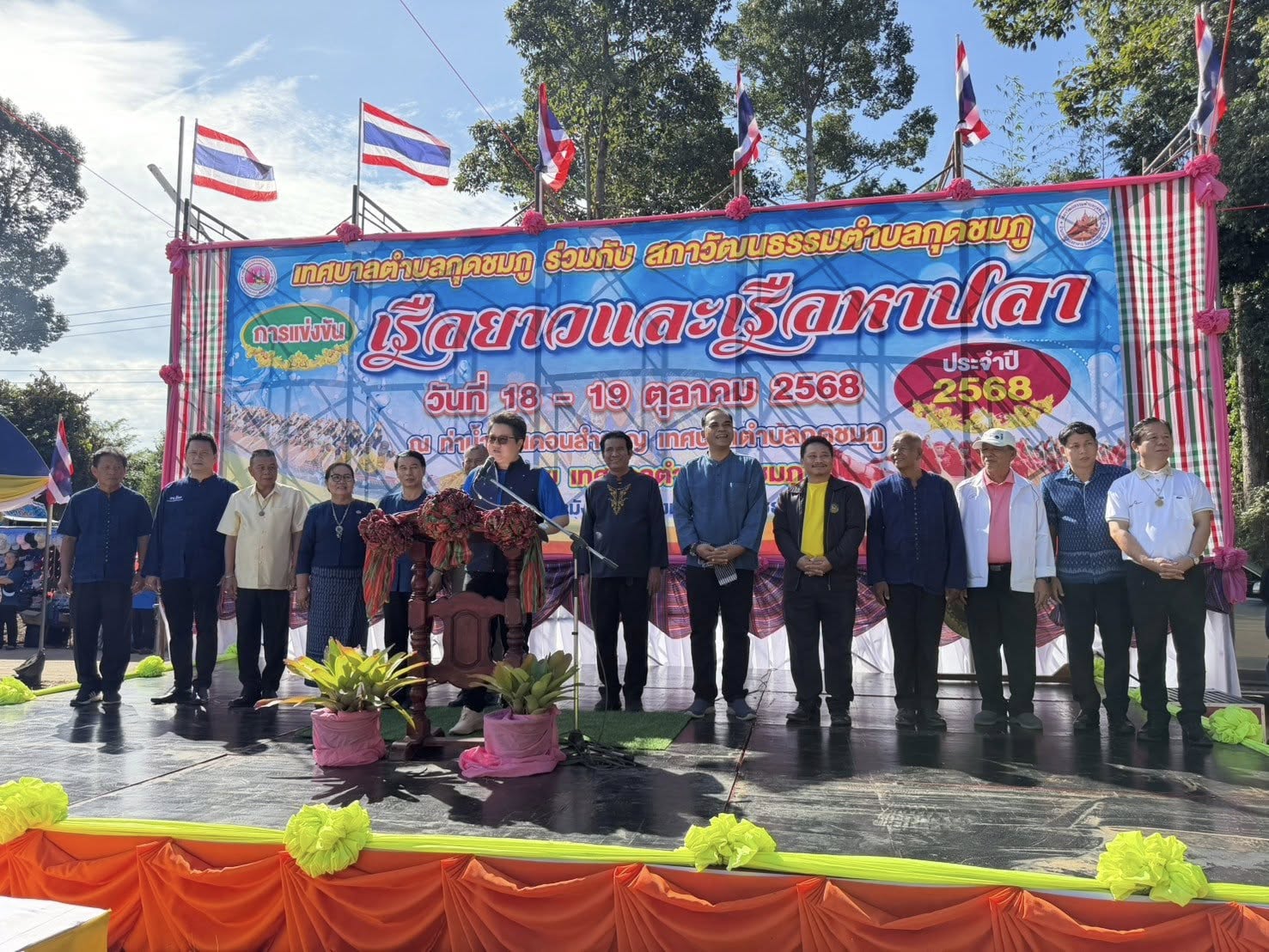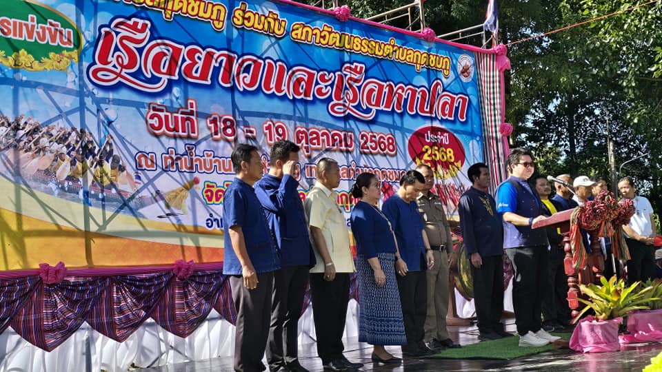 วันจันทร์, 20 ตุลาคม 2568 14:59วันที่ 18 ตุลาคม 2568 เวลา 09:00 น.นางสาวแนน บุณย์ธิดา สมชัย โฆษกพรรค ภูมิใจไทย สมาชิกสภาผู้แทนราษฎรจังหวัดอุบลราชธานี ประธานในพิธีเปิดโครงการ แข่งขันเรือยาวและเรือหาปลา ประจำปี 2568 พร้อมทั้ง นายสรชาย ครองยุทธ นายอำเภอพิบูลมังสาหาร หัวหน้าส่วนราชการในพื้นที่ ภาคีเครือข่าย ในอำเภอพิบูลมังสาหาร ร่วม เป็นเกียรติในพิธีเปิดการแข่งขันเรือยาวและเรือหาปลา ประจำปี 2568 โดยมี นายมงคล ศุภสุข นายกเทศมนตรีตำบลกุดชมภู ได้กล่าวรายงานวัตถุประสงค์ของการจัดงาน เพื่อให้ เกิดความสมัครสมานสามัคคีในชุมชน การอนุรักษ์ประเพณีอันดีงาม และอนุรักษ์การ แข่งขันเรือยาวและเรือหาปลาให้อยู่คู่กับท้องถิ่นสืบไป พร้อมทั้งคณะผู้บริหารเทศบาล สมาชิกสภาเทศบาล นายอภิชาติ เศรษฐมาตย์ ปลัดเทศบาลตำบลกุดชมภู เจ้าหน้าที่ พนักงานเทศบาลและประชาชนในพื้นที่ ร่วมเป็นเกียรติในงานกว่า 300 คน ณ บริเวณ ท่าน้ำบ้านดอนสำราญ ตำบลกุดชมภู อำเภอพิบูลมังสาหาร จังหวัดอุบลราชธานี