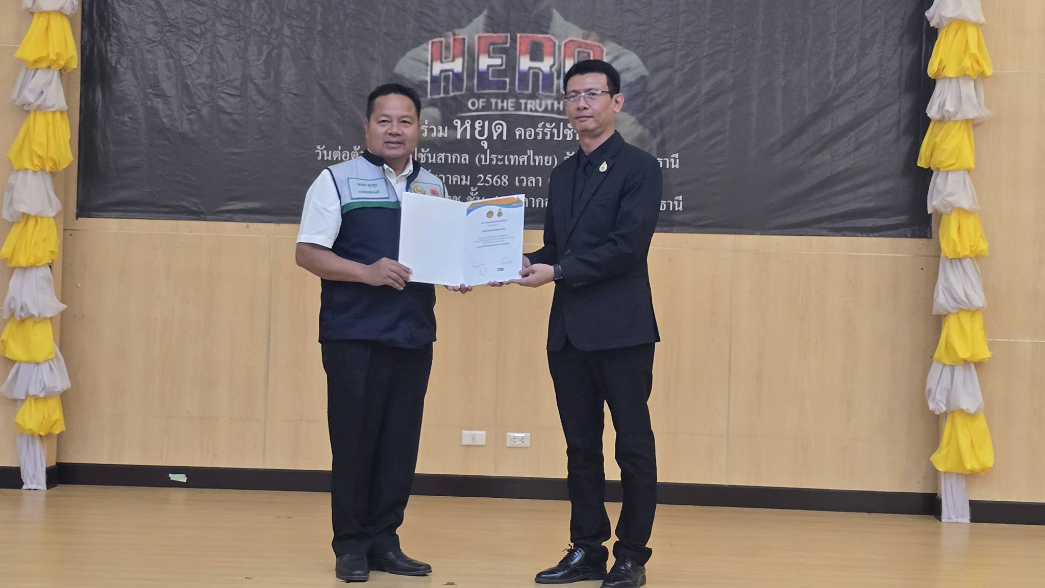 วันอังคาร, 09 ธันวาคม 2568 15:21วันที่ 9 ธันวาคม พ.ศ. 2568 เวลา 09.00 น. นายมงคล ศุภสุข นายกเทศมนตรีตำบล กุดชมภู พร้อมด้วยคณะผู้บริหารเทศบาล นายอภิชาติ เศรษฐมาตย์ ปลัดเทศบาลตำบลกุดชมภูและพนักงานเจ้าหน้าที่เทศบาลตำบลกุดชมภู รับมอบประกาศณียบัตรเกียรติคุณ หน่วยงานภาครัฐ ที่มีผลประเมิน ITA ในระดับ ผ่านดีเยี่ยมประจำปีงบประมาณ 2568 เนื่องในวันต่อต้านคอร์รัปชั่นสากล(ประเทศไทย) ณ ห้องประชุมปทุมวรราช ชั้น 4 ศาลากลาง จังหวัดอุบลราชธานี