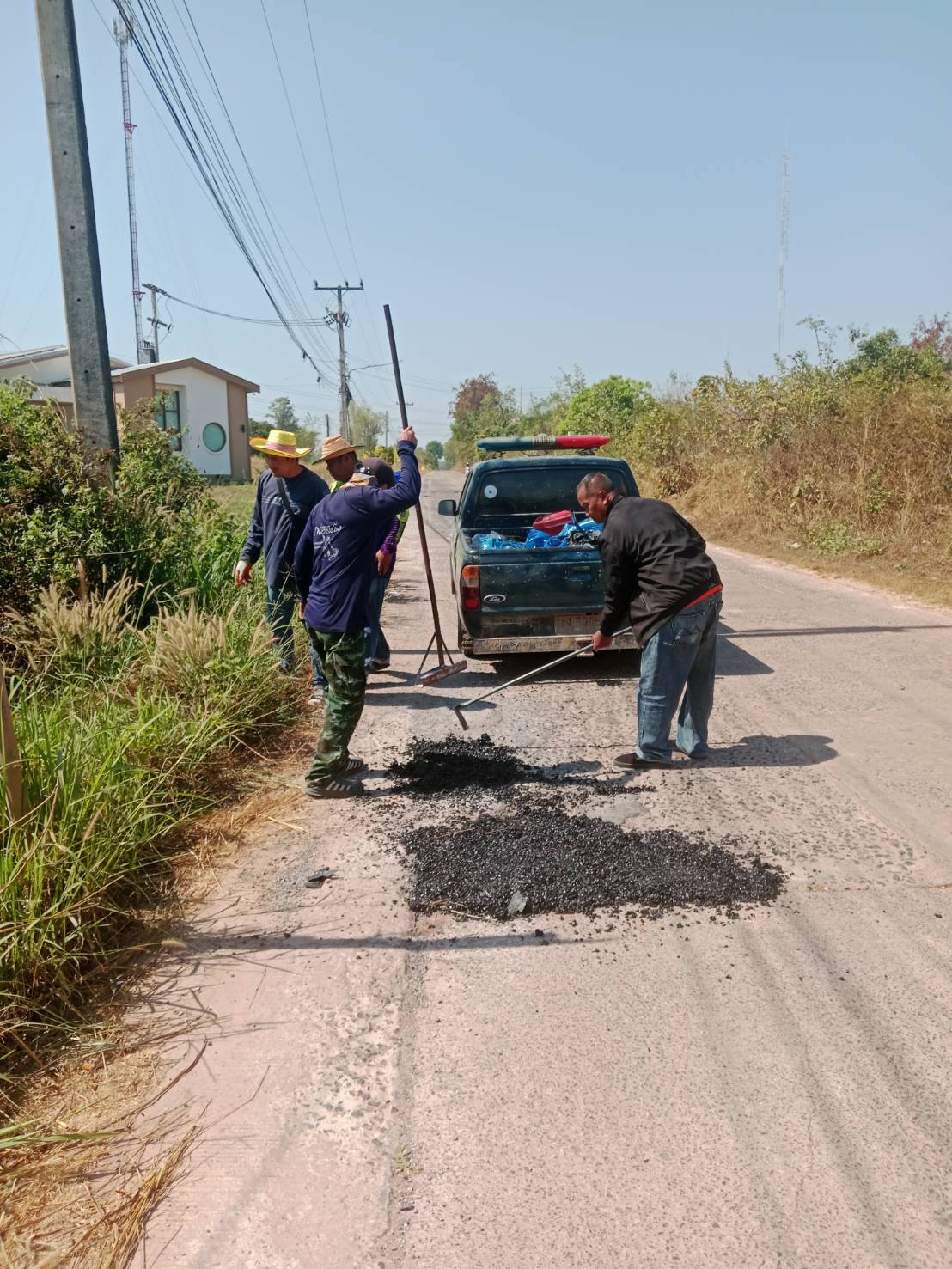 ซ่อมแซมถนน ที่เป็นหลุมเป็นบ่อ ภายในหมู่บ้าน