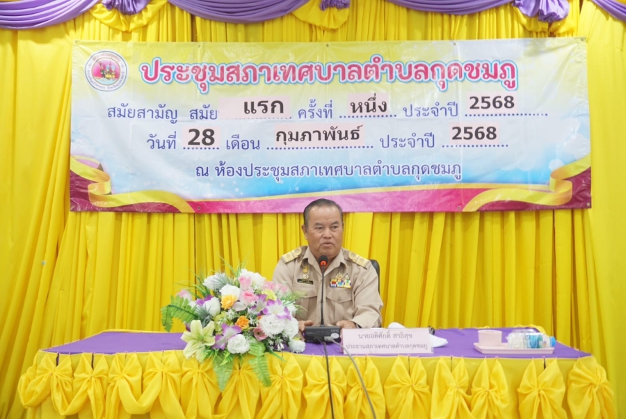 วันศุกร์, 28 กุมภาพันธ์ 2568 15:20วันที่ 28 กุมภาพันธ์ พ.ศ. 2568 เวลา 09.30 น.นายอดิศักดิ์ สาธิสุข ประธานสภาเทศบาล ตำบลกุดชมภู เปิดประชุมสภา สมัยประชุมสามัญประจำปี สมัยแรก ครั้งที่หนึ่ง ประจำปี 2568 ณ ห้องประชุมเทศบาลตำบลกุดชมภู อำเภอพิบูลมังสาหาร จังหวัดอุบลราชธานี โดยมีคณะผู้บริหารเทศบาล ฯหัวหน้าส่วนราชการ กำนัน ผู้ใหญ่บ้าน ประชาชนทั่วไปที่สนใจเข้าร่วมรับฟัง มีระเบียบวาระการประชุม 6 วาระ ณ ห้องประชุมเทศบาลตำบลกุดชมภู อำเภอพิบูลมังสาหาร จังหวัดอุบลราชธานี