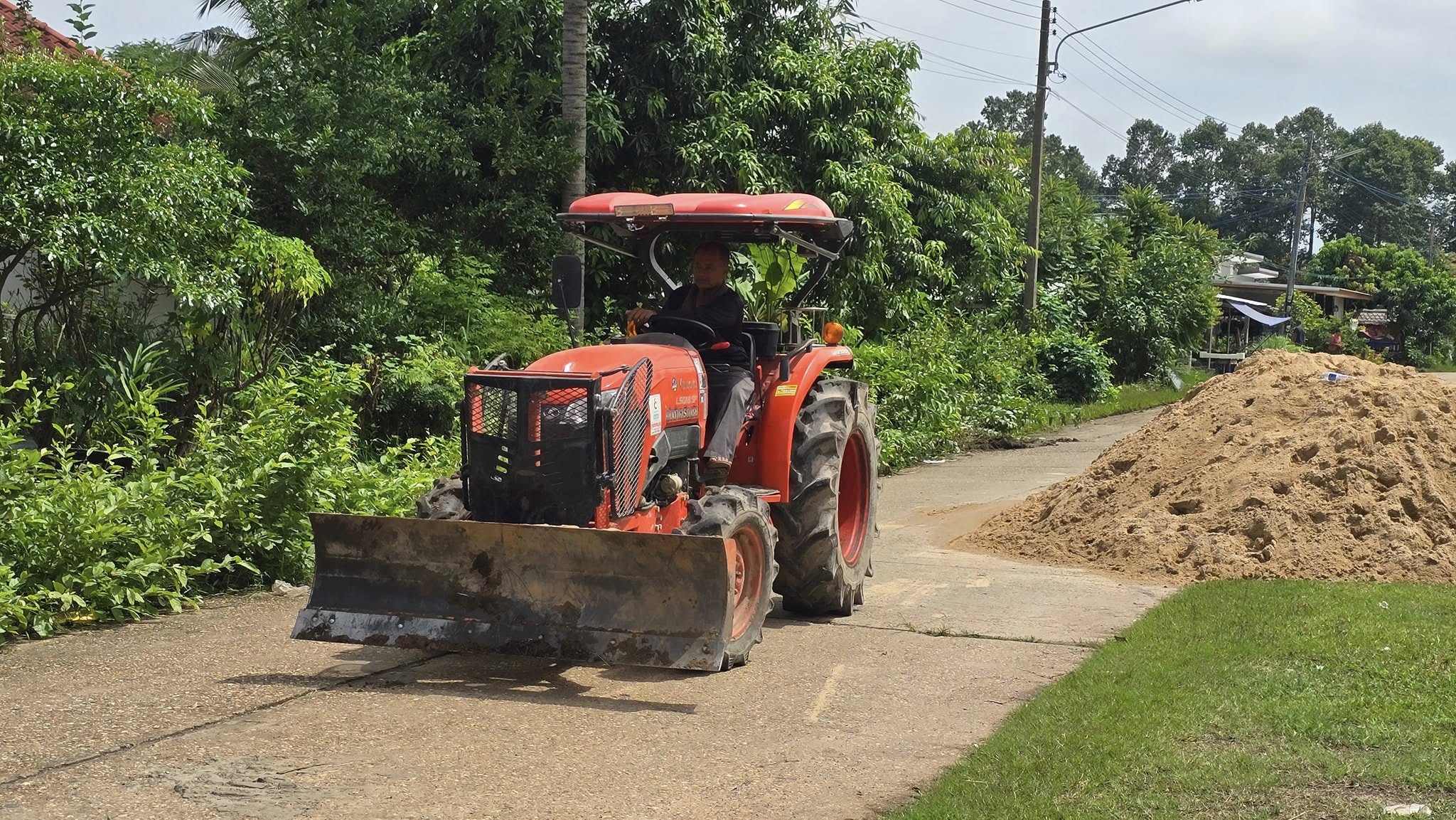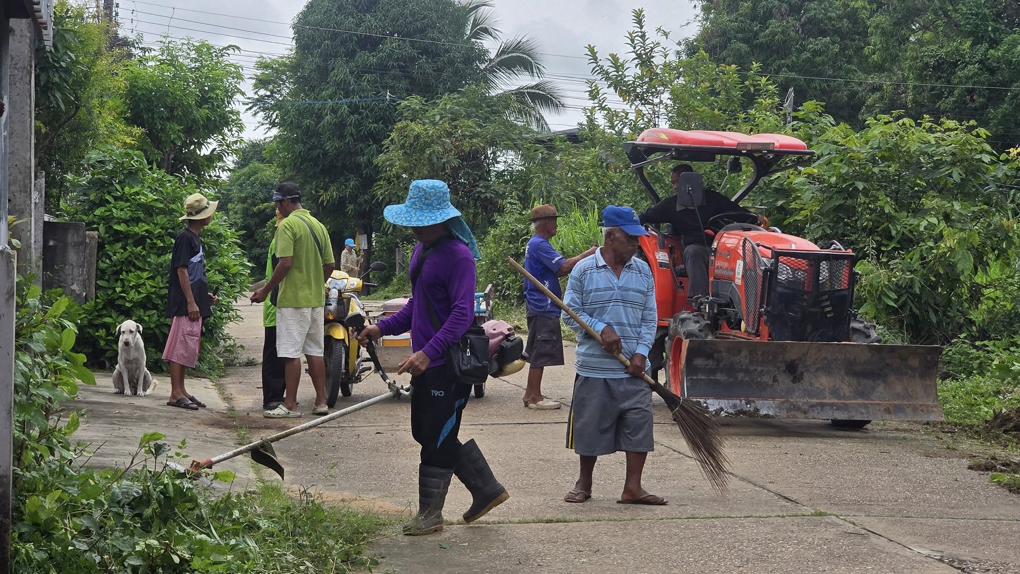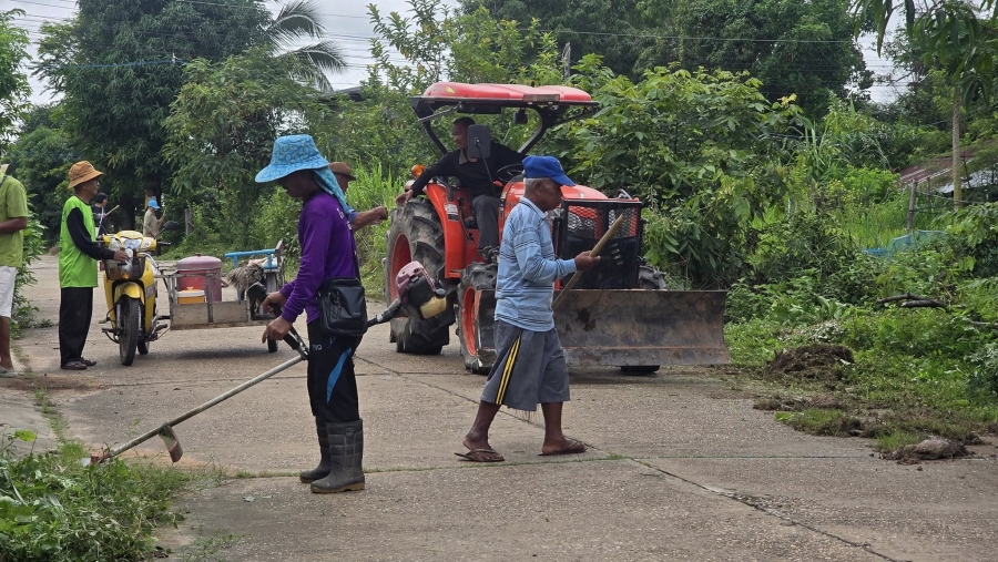 ตัดกิ่งไม้ 2 ข้างทางที่กีดขวางการจราจร ปรับเกรดถนน เพื่อเปิดหญ้าที่ปกคลุมถนนออก เพื่อความปลอดภัยในการ การสัญประชาชน